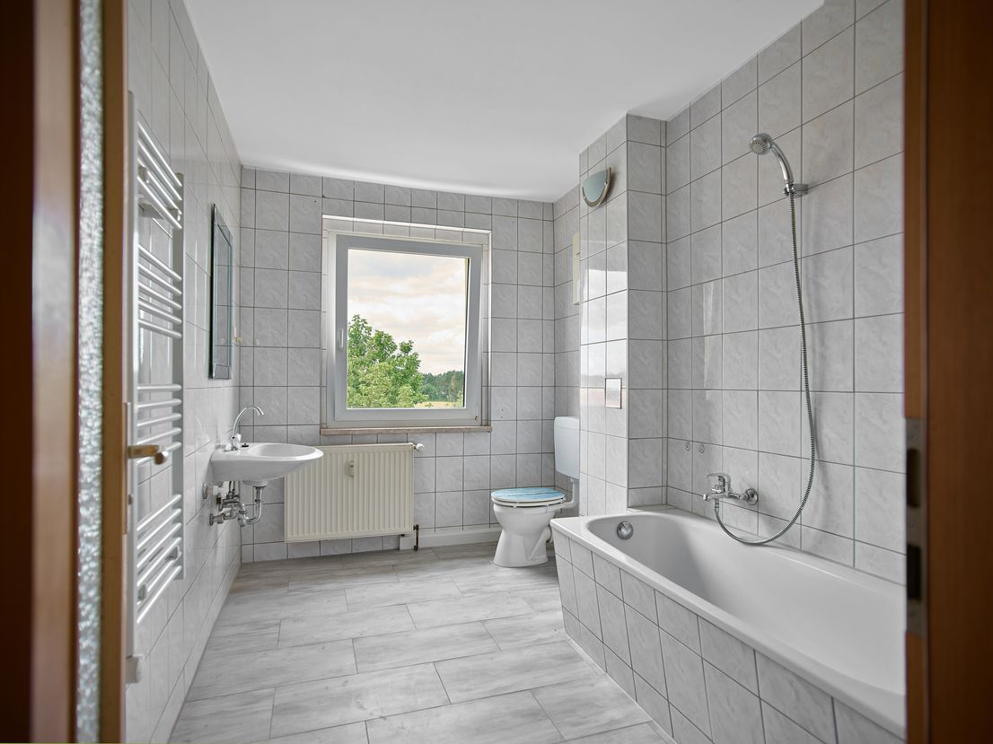 Das Wohnzimmer, das Schlafzimmer, das Kinderzimmer und der Flur sind mit einem neuem hochwertigen Laminatboden ausgestattet. Die Küche und das Badezimmer sind gefliest.